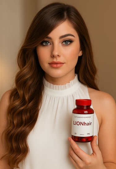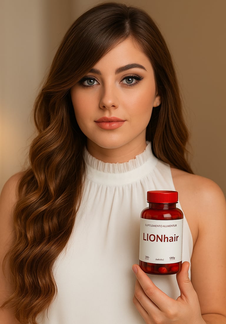 LIONhair é um suplemento desenvolvido para quem deseja conquistar um cabelo mais forte, resistente e cheio de vida. Sua fórmula poderosa combina vitaminas, minerais e colágeno de alta absorção, atuando diretamente na raiz para estimular o crescimento natural dos fios enquanto reduz a queda e fortalece cada mecha de dentro para fora.